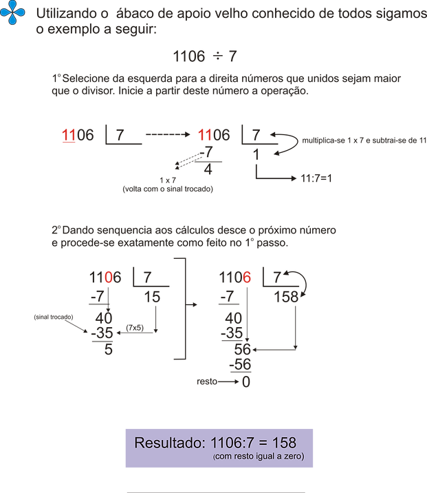 a : b = c, lê-se "a" dividido por "b" igual a "c"